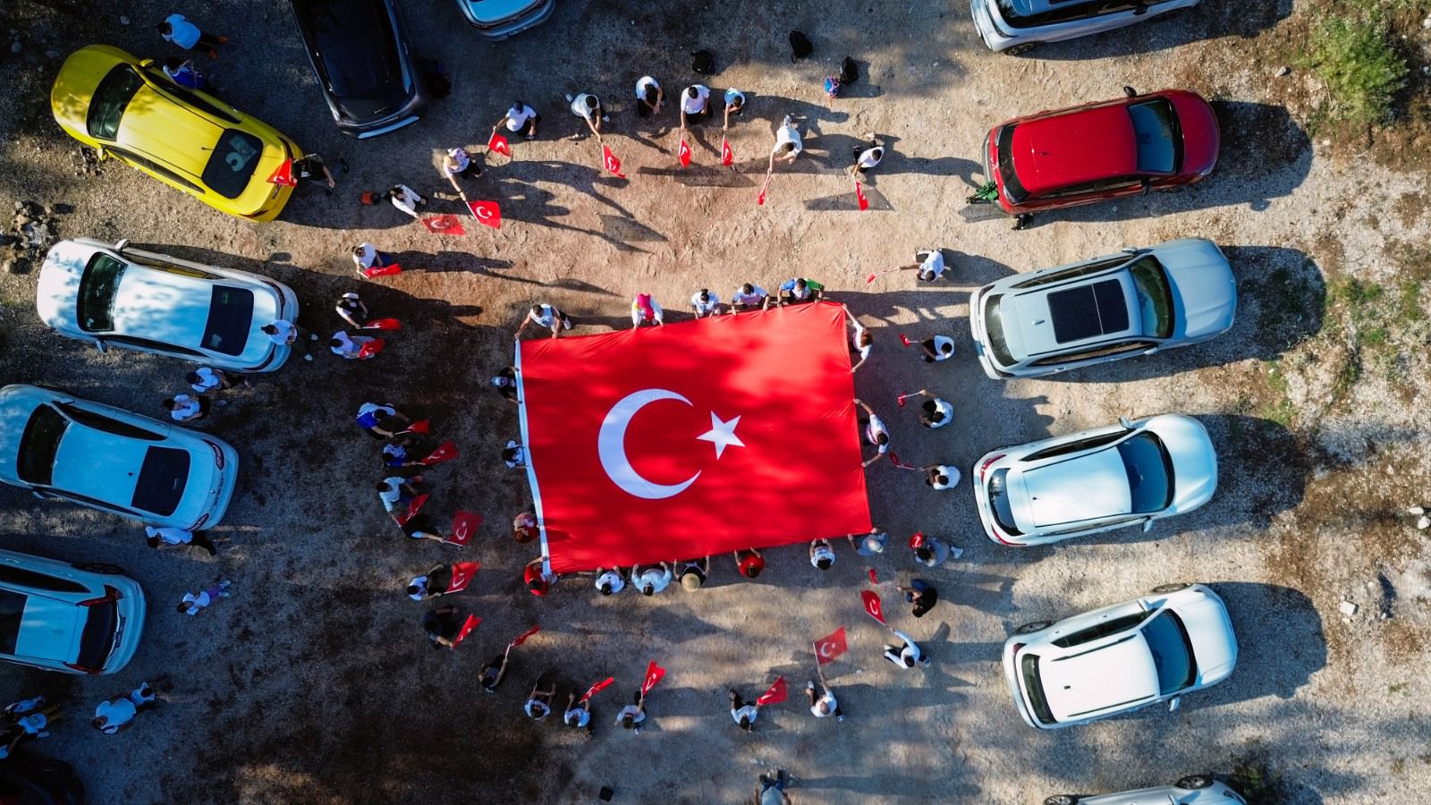 Günün en anlamlı anlarından biri ise Türk bayrağının hep birlikte açılmasıydı. Bu sembolik hareket, hem birlikteliği hem de Cumhuriyet’e olan bağlılığı gözler önüne serdi.